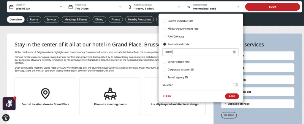 You can however enjoy the special rate for Europatat Congress participants that the Radisson is offering. See more information below.